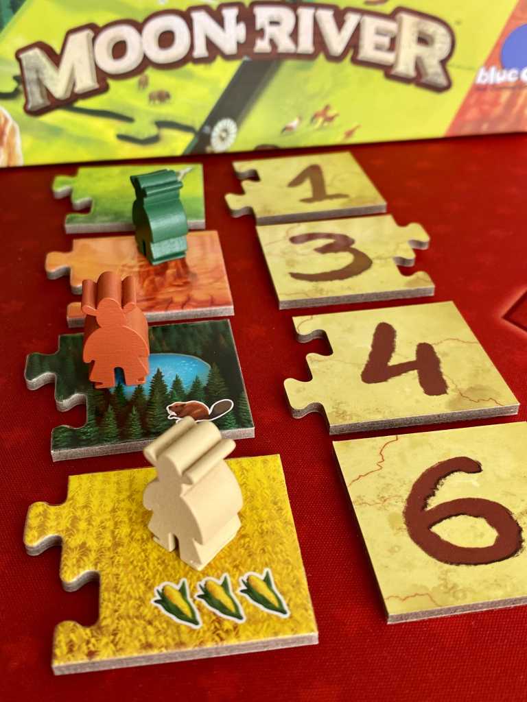 Depuis le temps que je vois ces moitiés de dominos s’emboîter tels des puzzles sur des coins de tables de Festivals, voici enfin le fin mot de l’histoire avec MOON RIVER, un jeu dans la gamme de KINGDOMINO.