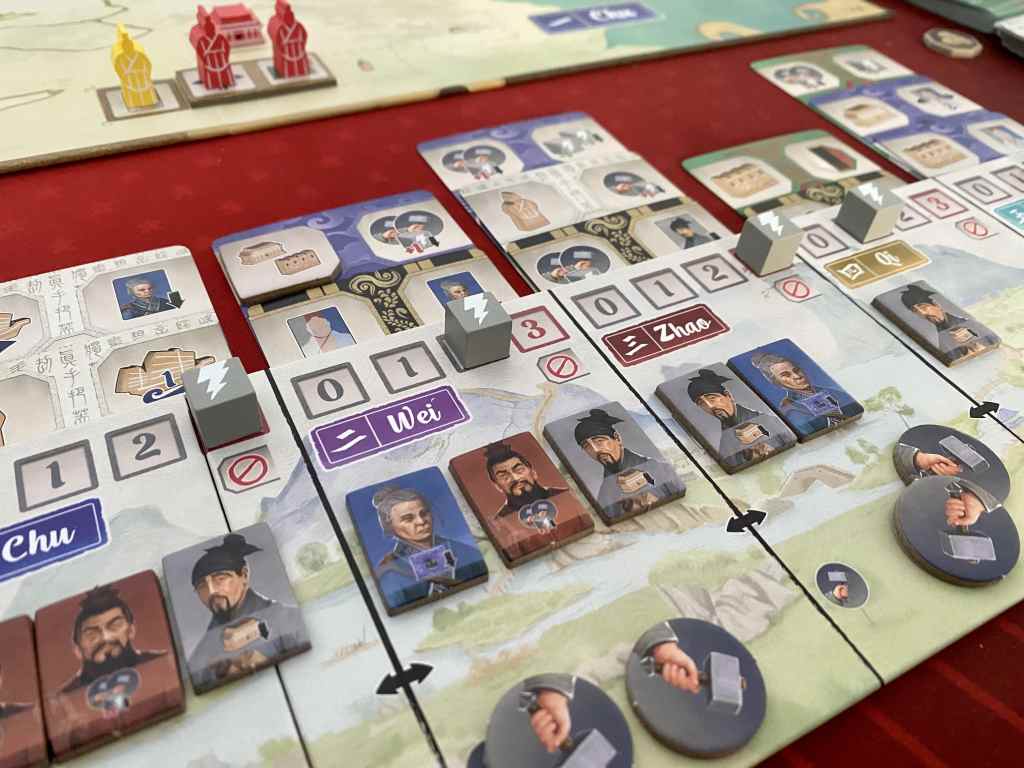 Alors, non, ZHANGUO est particulièrement complexe. Il s’agit sans aucun doute d’un jeu très expert. Mais il ne base pas sa difficulté sur une mécanique alambiquée ou remplie de détails et d’exceptions. D’ailleurs, l’iconographie est parfaitement compréhensible. Les participants n’ont pas besoin d’avoir le nez dans la règle sans arrêt. La seule petite difficulté provient de la représentation des actions semblables aux capacités personnelles pouvant être activées. Une fois cet élément maîtrisé, le jeu se déroule véritablement sans encombre. Non, la vraie complexité provient de la profondeur de réflexion que le jeu réclame. Vous allez sortir la tête au carré, mais ZHANGUO en vaut la peine.