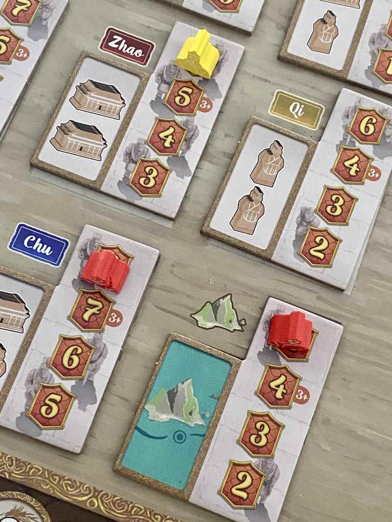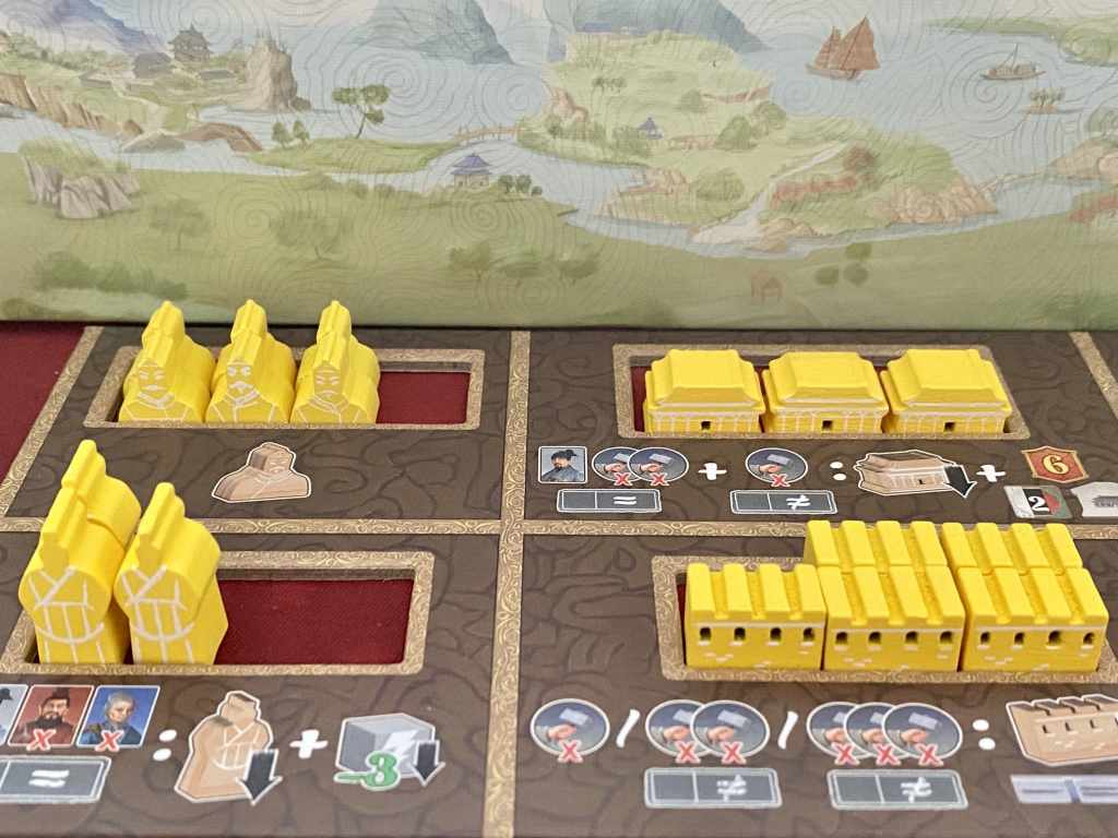 Au-delà de son aspect physique, ZHANGUO est vraiment un excellent jeu. Il pousse les joueurs dans leurs retranchements tactiques et stratégiques. Les options sont tellement nombreuses qu’il faudra faire des choix. Faut-il tenter les majorités de fin de partie ou bien s’assurer de réaliser des objectifs de régions en plaçant nos Soldats de Terre Cuite ? S’agit-il de réaliser des actions peu lucratives avant d’améliorer nos propres capacités ou d’attendre en vue d’optimiser au maximum un tour de jeu ? Est-il préférable de prendre la mer ou bien de participer à la réalisation de la Muraille ? Ces questions relèvent de la haute voltige, et je ne parle même pas de la sélection de cartes à utiliser : où, quand et pourquoi ?