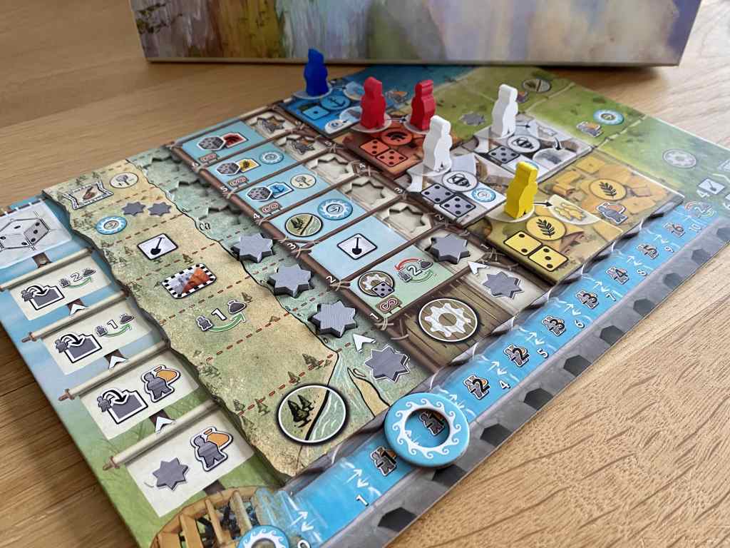+ Le Bateau des Saisons. Si le dé choisi se situe au même endroit que le bateau des saisons, il est alors possible de récupérer l’effet bonus présent sous ce dernier sur le plateau de jeu.