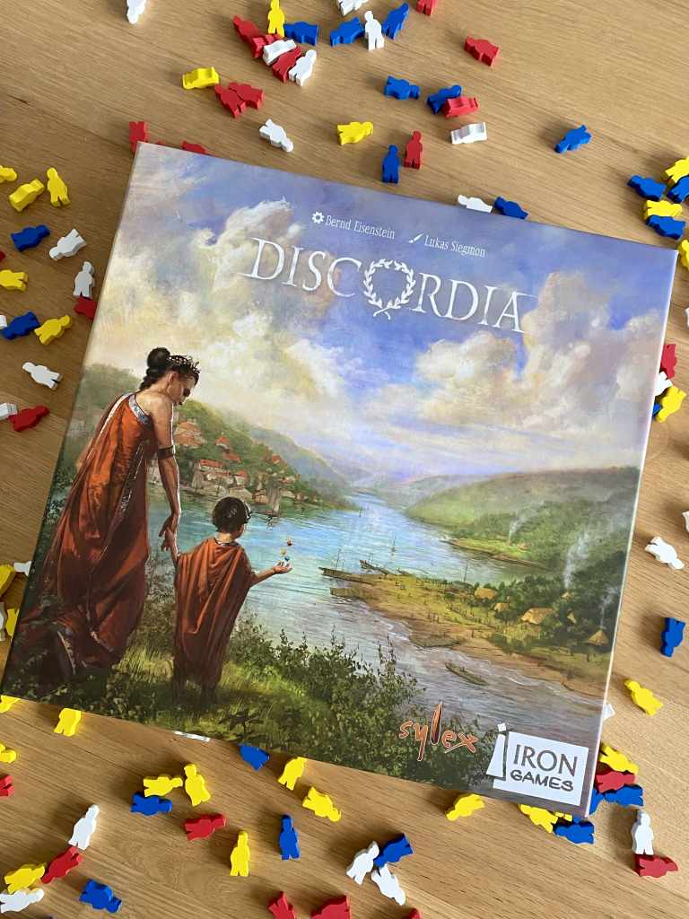 DISCORDIA ne mise pas non plus tout son charme sur le matériel. Bien qu’il soit de belle qualité, on ne passe pas ses parties à rêvasser dessus. Si les plateaux double-couche sont appréciables, le reste fait le « job » efficacement, sans chichi autour, ni robes qui tournent. Le résultat est un peu tristounet et finalement très « Allemand », sans fantaisie, ni gaieté. Pourtant, les joueurs ont la lourde tâche de gouverner le mieux possible afin d’épater l’impératrice Agrippine. Sur le papier, cela promet du magnifique et du grandiose. En réalité, la thématique va très vite être reléguée au dixième plan, voire au onzième. Les joueurs n’y penseront pas une seule seconde, bien trop préoccupés par l’objectif farfelu d’une partie, à savoir se débarrasser de leurs ouvriers.
