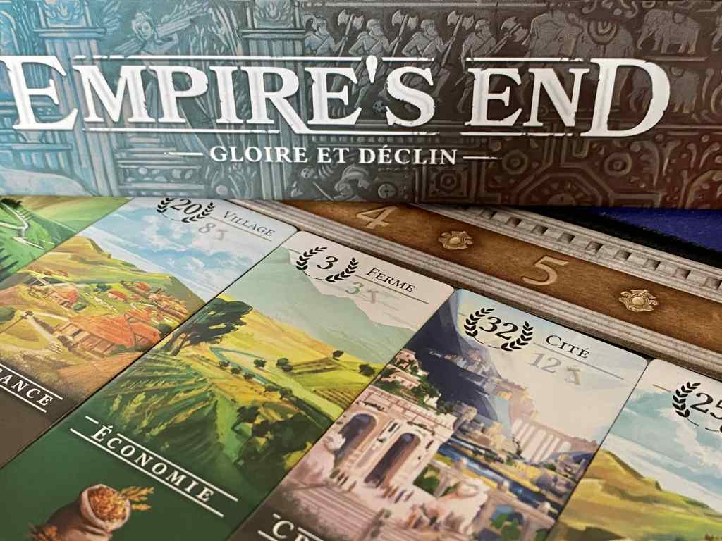 EMPIRE’S END ne laisse pas indifférent. Je comprends tout à fait qu’on puisse le détester. Moi, je l’adore exactement pour les mêmes raisons que certains le détestent. Les émotions qu’ils provoquent sont novatrices et ce mélange entre sérieux et divertissement témoigne d’un numéro d’équilibriste de haute voltige. En effet, on rit des catastrophes que subissent les autres tout autant qu’on établit des plans stratégiques pour optimiser la moindre tuile qu’il nous reste. Il ne faut surtout pas le voir comme un jeu de civilisation, mais comme un jeu d’opportunisme où l’objectif est de contrôler le plus possible un inconnu nuisible. Voilà une belle proposition, originale, clivante et audacieuse.