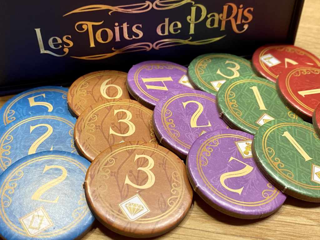 Aussi, le fait que chaque « stop ou encore » puisse se terminer de trois manières différentes, provoquant trois partages singuliers et souvent non-égalitaires donne une force considérable à la mécanique. Les émotions sont fortes, entre jubilation, frustration, crainte, espoir ou déception, et les réactions autour de la table sont, en conséquence, enjouées et révèlent le meilleur ou le pire de ce que nous sommes. En ce sens, LES TOITS DE PARIS est un vrai divertissement, qui parvient à faire vivre un sincère moment de partage, aux sensations fortes, alors même que sa mécanique ne présente pas, à première vue, une époustouflante originalité. C’est le seul bémol que je lui ai trouvé. Et encore que, quand vous connaissez mon attirance pour les classiques, droits dans leurs bottes, je ne suis pas certaine que ce soit un défaut, bien au contraire.