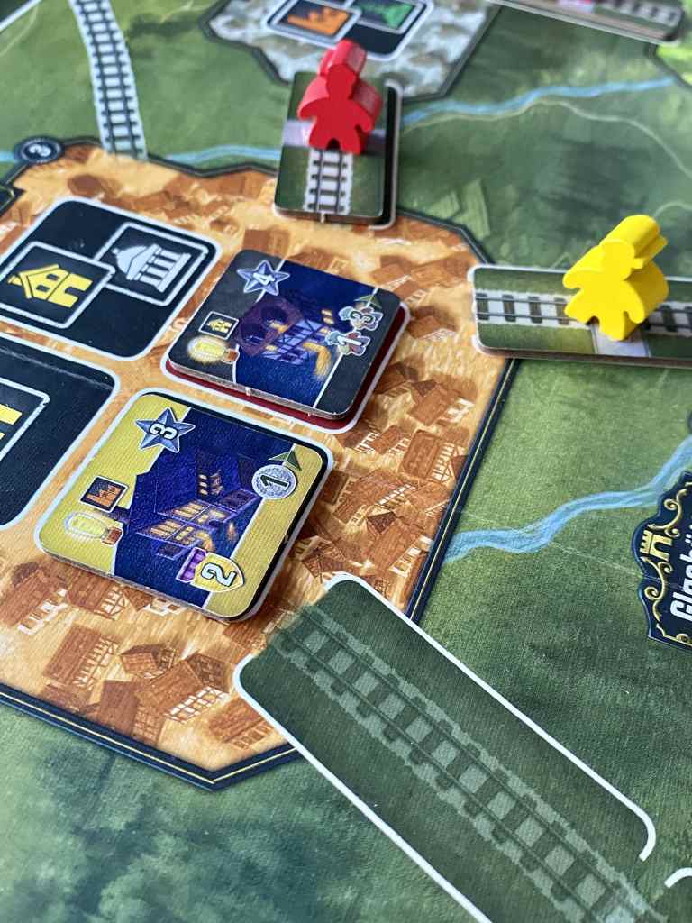 – Jouer une tuile Action de sa réserve sur un emplacement Voie Ferrée vide du plateau principal en y plaçant un de ses ouvriers. Si les bords de cette tuile correspondent aux couleurs d’une ville adjacente ou d’une autre tuile adjacente, les actions concernées par ces correspondances de couleurs sont réalisées, que ce soit pour le joueur actif ou pour le ou les possesseurs des tuiles adjacentes. Si l’ajout de cette tuile termine une liaison ferroviaire, les participants à l’élaboration de cette liaison reçoivent une récompense d’inauguration.