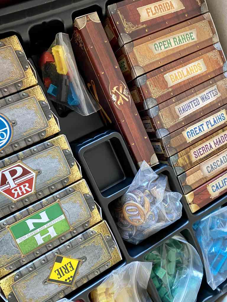 Après avoir décrit mes déceptions, je peux maintenant vous dire le plaisir que j’ai pris à faire les douze parties de la campagne. Certes, mon avis est encore plus subjectif que d’habitude, car j’aime LES AVENTURIERS DU RAIL pour ce qu’il est et pour ce qu’il me rappelle. Il est ma madeleine de Proust et j’ai conscience d’avoir bien du mal à en dire du mal, malgré des défauts objectivement existants. Déjà, le matériel est dingue. Oui, je sais, on n’apprécie pas un jeu parce qu’il est beau… Un peu, quand même, on ne va pas se mentir. Ensuite, LÉGENDES DE L’OUEST m’ont permis de passer d’excellents moments en famille, des moments parfois fourbes, des moments souvent stressants, bref, des moments de partages privilégiés. Et ces moments n’ont pas de prix.