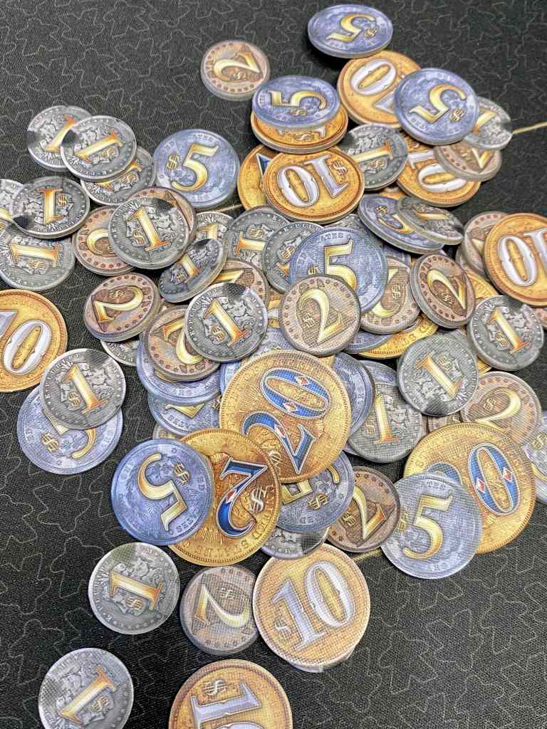 Les joueurs inscrivent leur résultat sur un reçu bancaire qu’ils glissent dans leur Coffre-fort. Le perdant devient Premier joueur pour la partie suivante.