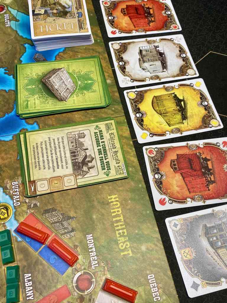 – Piocher des Tickets. Le joueur actif pioche trois Tickets (en plus de ceux choisis en début de partie). Il doit obligatoirement en garder au minimum un et les conserver jusqu’à la fin de la partie secrètement.