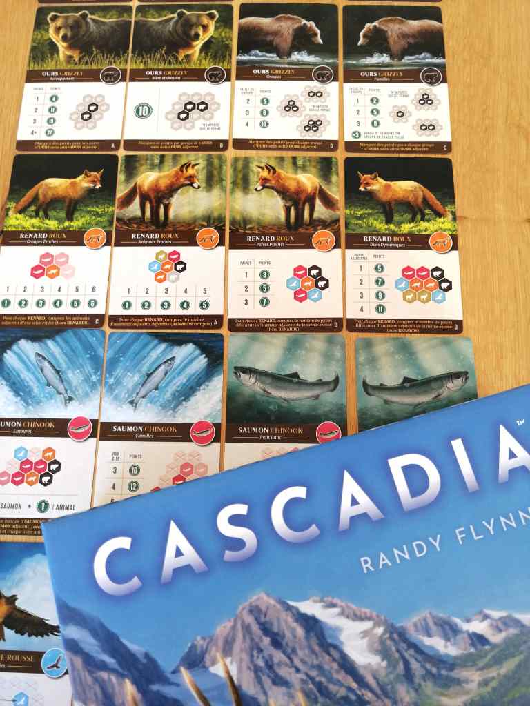En premier abord, CASCADIA ressemble étrangement à PARKS de part son format, la proximité de leurs thématiques Nature-Écologie et l’esprit général apaisé et zen qui se dégage de l’illustration de couverture. Pourtant ces deux jeux n’ont pas grand chose en commun à part peut être le plaisir qu’ils procurent.