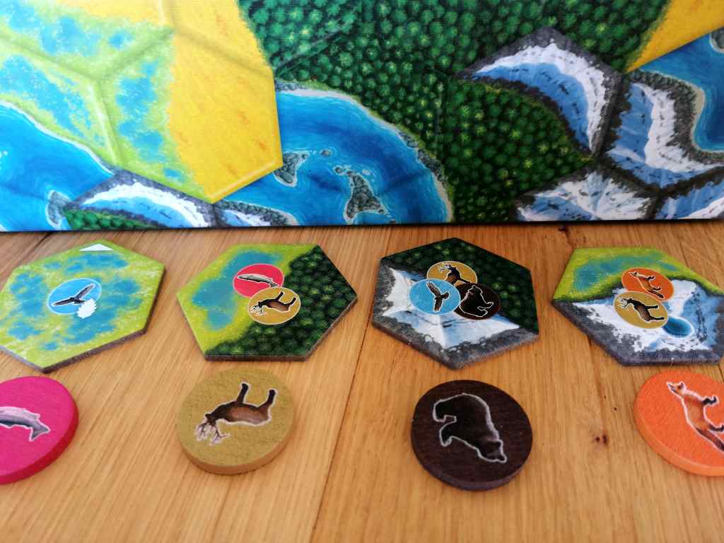 Aussi, même si le jeu s’avère très mécanique, la thématique se ressent agréablement. Les explications du livret de règles sur les habitats et les animaux sont véritablement appréciables. La qualité du matériel, avec notamment les jetons en bois, aide à cette très légère immersion. CASCADIA est un excellent jeu de tuiles, à la fois accessible et très malin. Le manque de surprise et d’originalité est balayé d’un revers de main par une efficacité redoutable.