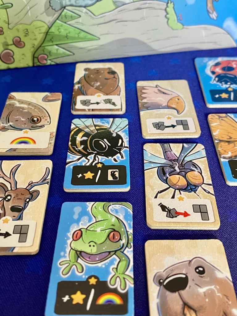Si l’opportunisme se fait une place au soleil, c’est avant tout et surtout le hasard que l’on remarque très rapidement. En effet, la pioche de tuiles détermine bien souvent le vainqueur. Il en est de même pour les Esprits, gagnés par la formation d’un carré de tuiles Paysage dans un panorama. Certains présentent des capacités parfois bien trop avantageuses par rapport à d’autres. Mais c’est aussi de par ces déséquilibres volontaires que le jeu devient un peu moins linéaire et sérieux. Oui, car ce qui est étrange et dommageable, c’est ce manque de « fun » pour un titre léger, très rapide, et aussi hasardeux. Pourtant, l’introduction des Arcs-en-ciel, venant pallier le facteur chance, possède sur le papier, ce petit quelque chose de tactique et de divertissant. En effet, les protagonistes peuvent volontairement ne capturer aucune tuile, dans le but de piocher peut-être celle qu’ils souhaitent à tout prix, ou d’obtenir un fameux joker. Ils poussent leur chance, toujours à la manière de l’Hanafuda, quitte à obtenir une jolie compensation.