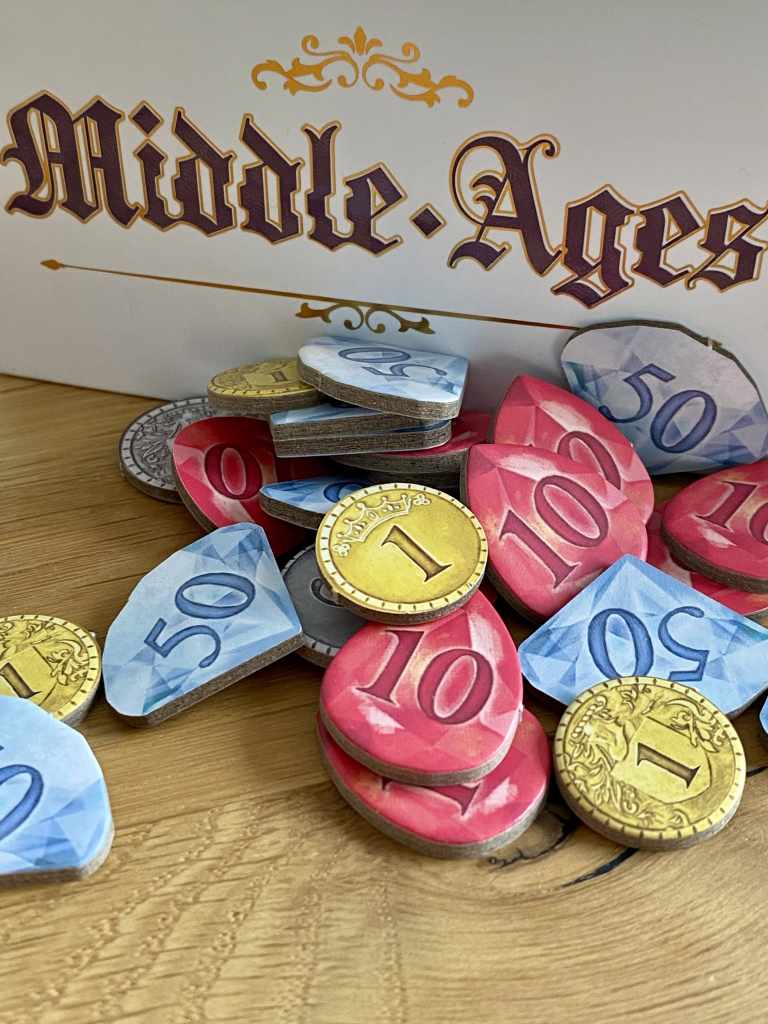 Tout est donc question d’opportunisme pour récupérer le plus de pièces possibles à chaque tour de jeu. Celles-ci représentent la seule et unique source de points de victoire, sans salade ou autre lourdeur de fin de partie. Ainsi, MIDDLE AGES se veut accessible et direct, et ne prend aucun détour pour délivrer du plaisir. Et quel plaisir de revenir à une simplicité si riche, si bienveillante et si droite dans ses bottes. En effet, le jeu est malin sans excentricité, ce qui permet de le proposer à un vaste public, qui sera sans nul doute conquis par cette franchise.