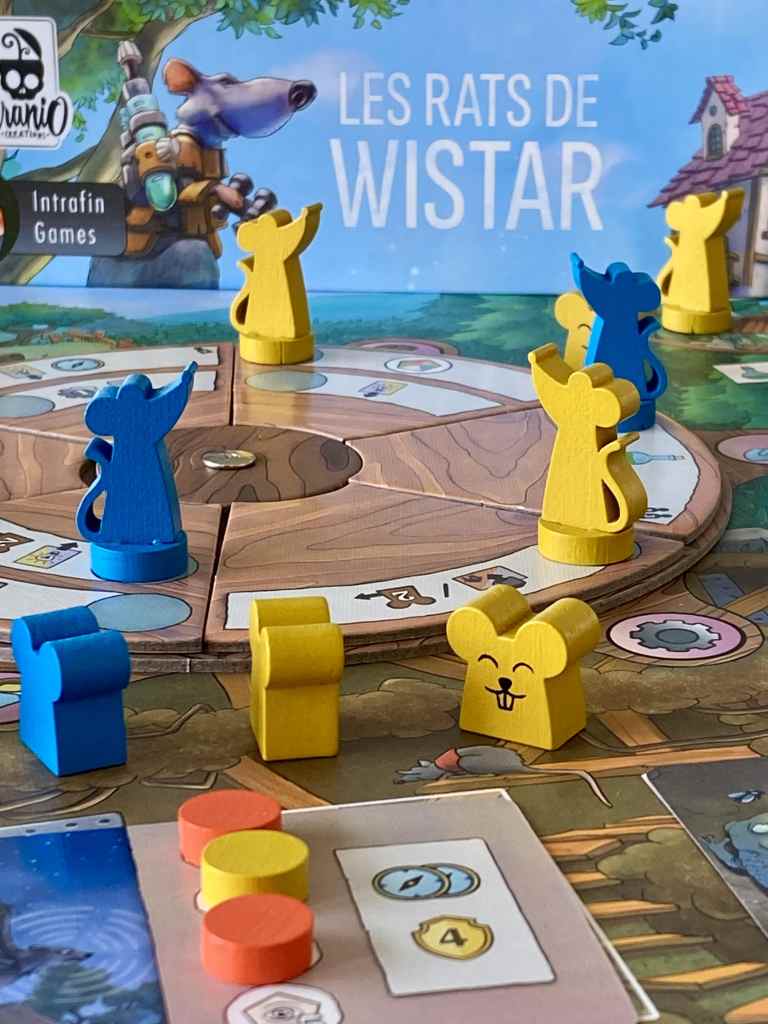 Quand on le regarde de près, LES RATS DE WISTAR n’est pas un titre innovant. Entre le placement d’ouvriers, la réalisation d’objectifs communs et la gestion de ressources, il apparaît comme un eurogame classique. Si son enveloppe thématique, elle, apporte beaucoup de fraîcheur, on ne peut pas non plus dire que l’immersion soit immense. À l’inverse, son habillage esthétique lui donne un sacré caractère et des apparences familiales alors même que le titre se révèle très complet et intellectuellement facétieux. Il en est de même pour les règles, qui s’expliquent et se comprennent assez aisément, mais qui mettent en jeu de sérieux défis. J’ai tout simplement adoré ces contrastes audacieux et cette belle prise de risque. LES RATS DE WISTAR cache bien son jeu.