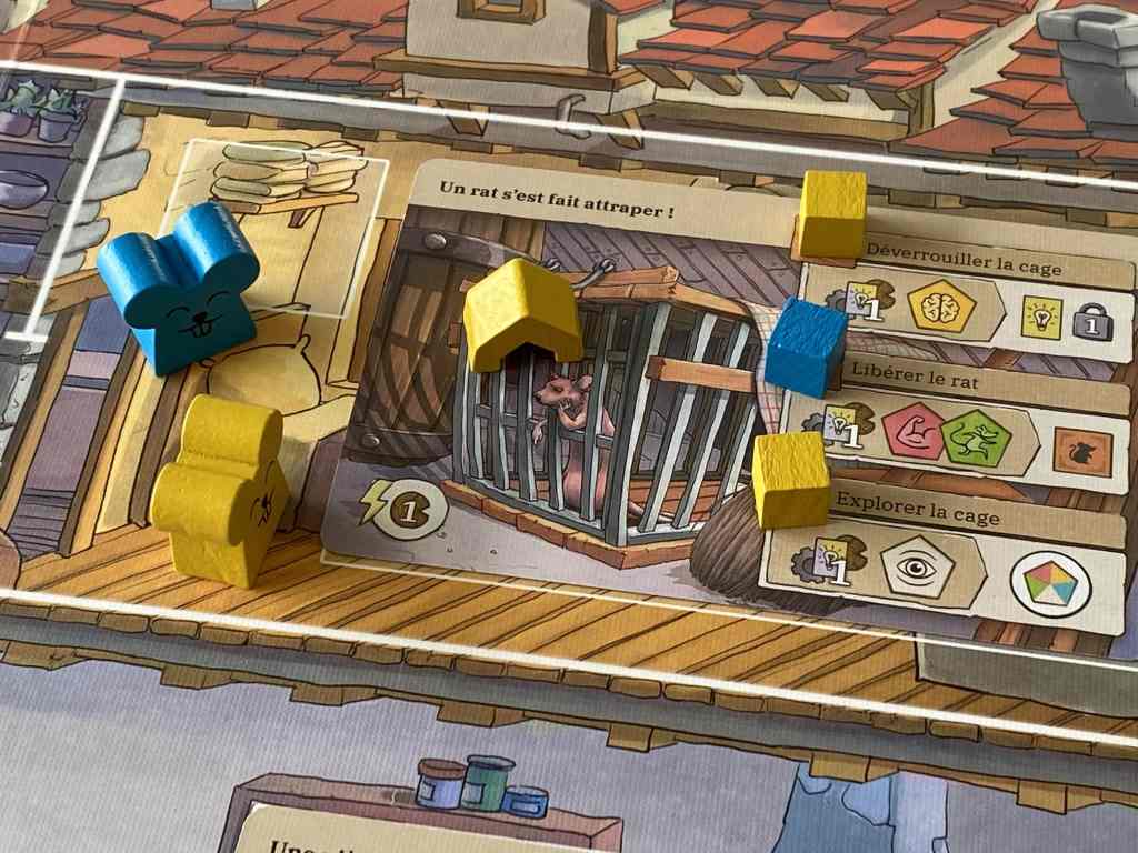 Le pitch est assez chouette pour le souligner. Les joueurs incarnent des rats venant de s’échapper d’un célèbre institut et souhaitant prouver leurs compétences pour tenter de diriger la colonie. Bienvenue dans le monde des « Minipouss » que les moins de quarante ans ne peuvent pas connaître ! Ce thème original et joyeux s’inscrit dans un décor, justement, très animé. L’ensemble du matériel, à la fois superbe et mignon, concrétise avec vitalité cette histoire de rats. Le coup de cœur est donc dans un premier temps thématique et esthétique.