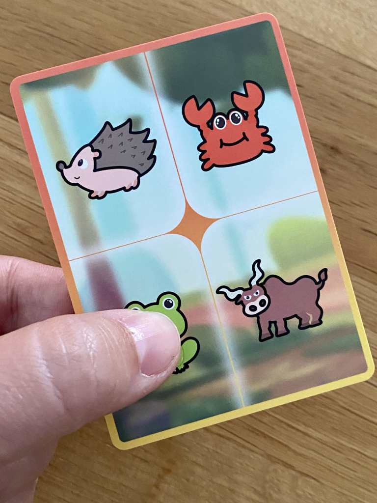 Une partie se compose de plusieurs manches. Durant chacune d’entre elles, les joueurs piochent une carte Animal sans regarder, ni toucher leur dos. Au « Top Départ », simultanément, ils touchent le dos de leur carte avec leurs doigts. Dès qu’ils pensent avoir reconnu l’illustration au dos de leur carte, ils placent leur pouce sur l’image lui correspondant à l’avant de la carte et s’écrient « Trouvé ». La manche se termine lorsqu’il ne reste plus qu’une seule personne encore à la recherche du bon animal. Les joueurs révèlent alors le dos de leur carte :