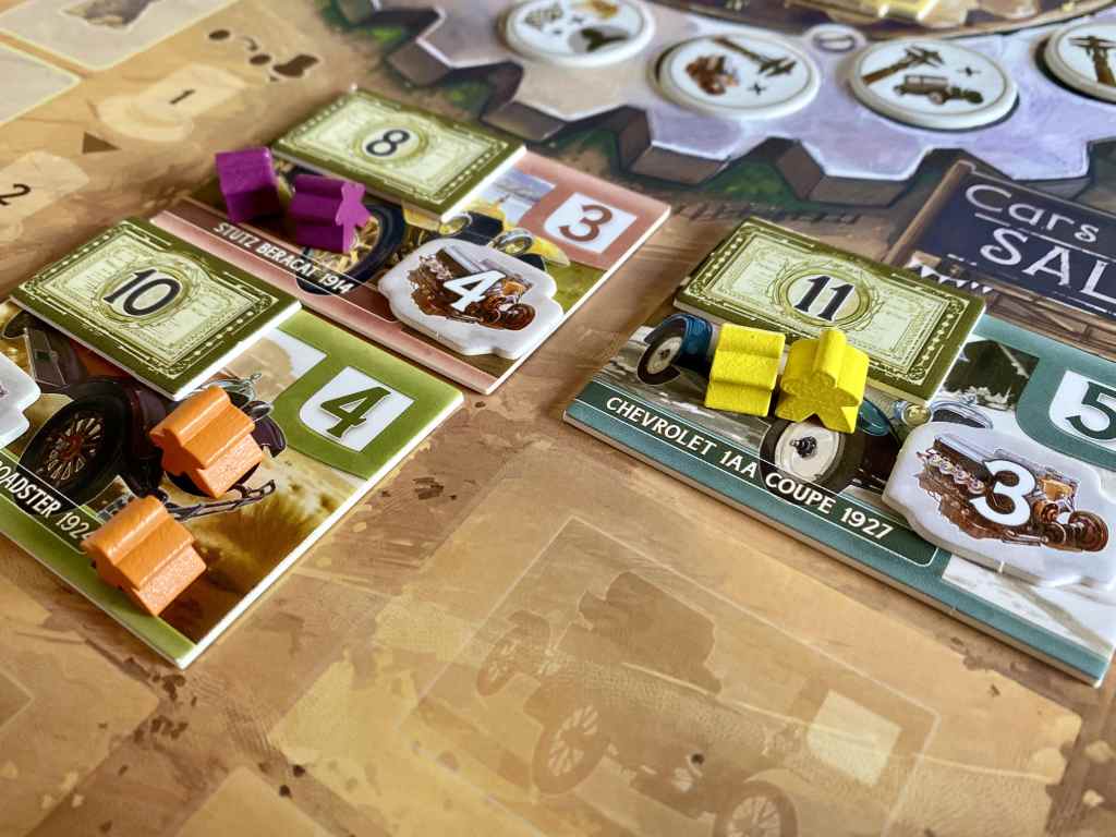 Le deuxième élément franchement enthousiasmant, c’est ce mécanisme de choix des clients et investisseurs qui achètent, en fin de manches, les voitures confectionnées par les joueurs. En ayant chacun leurs préférences d’achats, ils déjouent souvent les plans des participants et offrent des interactions grinçantes et sournoises.
