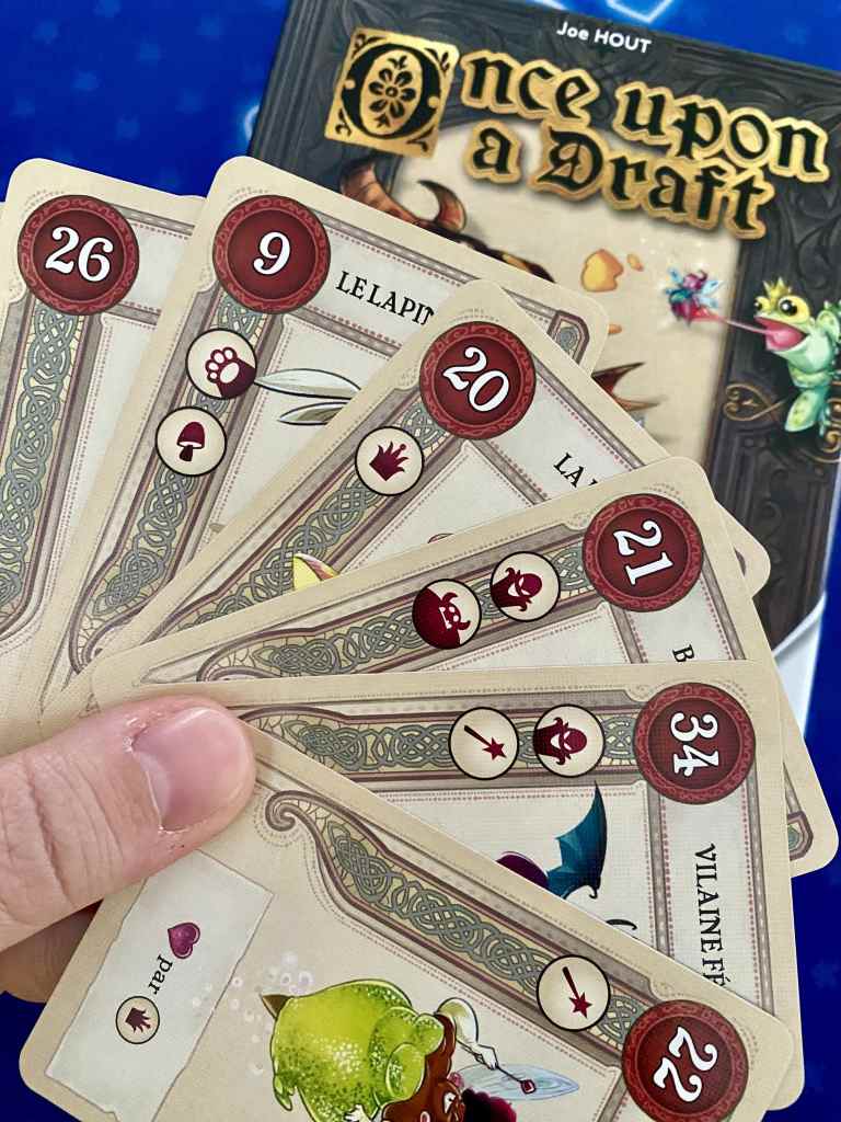 À ma grande surprise, j’ai beaucoup aimé ONCE UPON A DRAFT. En associant « draft », plis et collection, le jeu sort des sentiers battus et s’avère rafraîchissant. S’il rappelle par certains côtés FANTASY REALMS, il se veut plus accessible et plus léger. Les trois types de points de victoire obligent à des choix tactiques subtils malgré des parties de moins de trente minutes. Voilà un jeu étonnement efficace et bien « gaulé ».