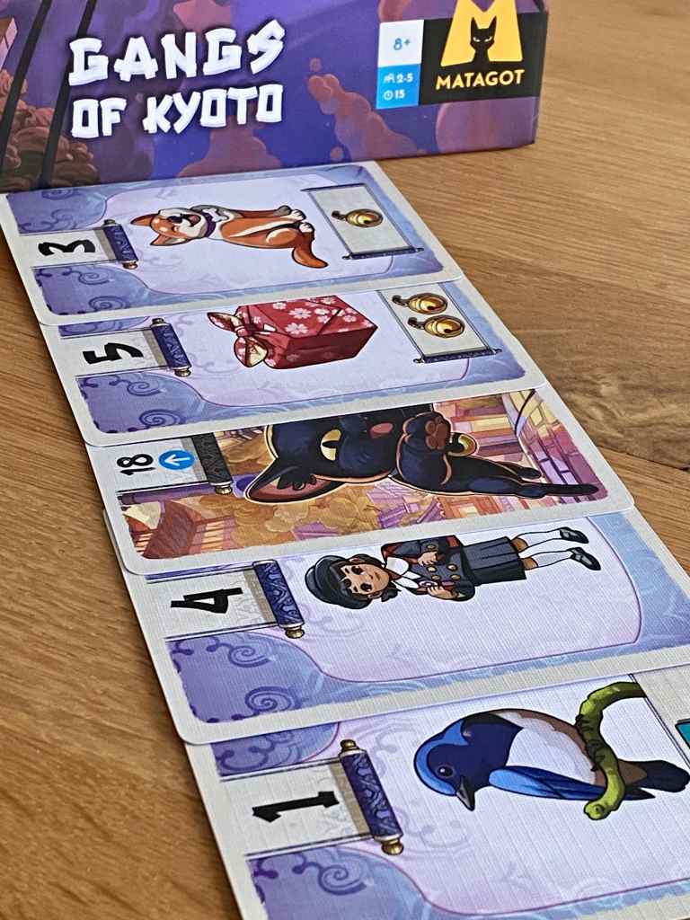 L’aventure, elle, se révèle assez prenante même si d’autres titres nous plongent dans des épopées plus épiques. GANGS OF KYOTO propose un « stop ou encore » malicieux dans lequel le joueur actif doit attribuer une carte à tous les participants. Leurs prises de connaissance se faisant les unes après les autres, les bonnes ou mauvaises surprises font tout le sel de ce petit jeu sournois et méchant.