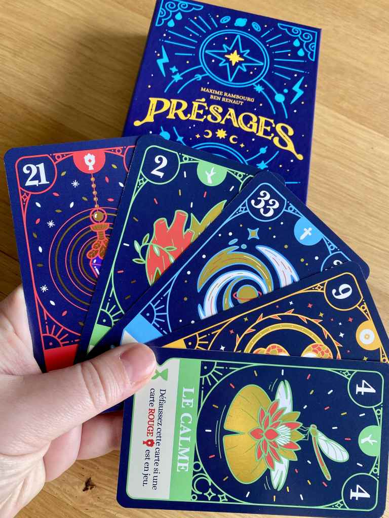 Pas besoin de vous faire un dessin, qui ne serait, de toute façon, pas à la hauteur, PRÉSAGES est une bombe. L’expérience collective qu’il propose est forte, authentique et innovante. Le jeu peut faire peur dans les premiers tours, mais il mérite véritablement qu’on lui fasse confiance. C’est lui le véritable guide vers des moments de complicité d’équipe, mais aussi envers les adversaires. Le titre oblige à se tourner vers l’autre, et fichtre, que cela fait du bien ! Enfin, PRÉSAGES est un jeu intelligent que l’on peut jouer avec légèreté, ou, et c’est également vrai, une expérience légère que l’on se doit d’appréhender avec intelligence.