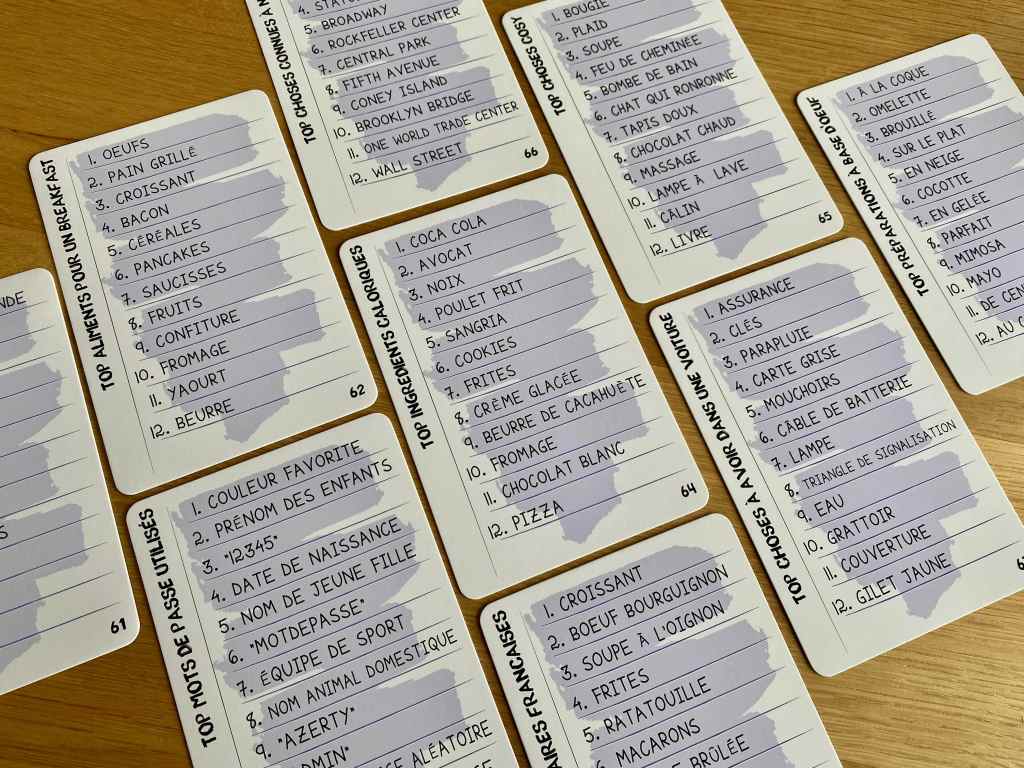 Mais l’idée n’était pas de laisser des joueurs, moins créateurs, dans un coin. TIC TAC TOP à l’ambition de rassembler autour d’un moment simple et convivial. Il réussit sa mission avec humilité. L’idée de réunir le Bingo et des idées à associer est véritablement brillante, pour peu que les participants aient envie de se prêter au jeu et de s’amuser. Et plus ils sont nombreux, meilleure est l’expérience.
