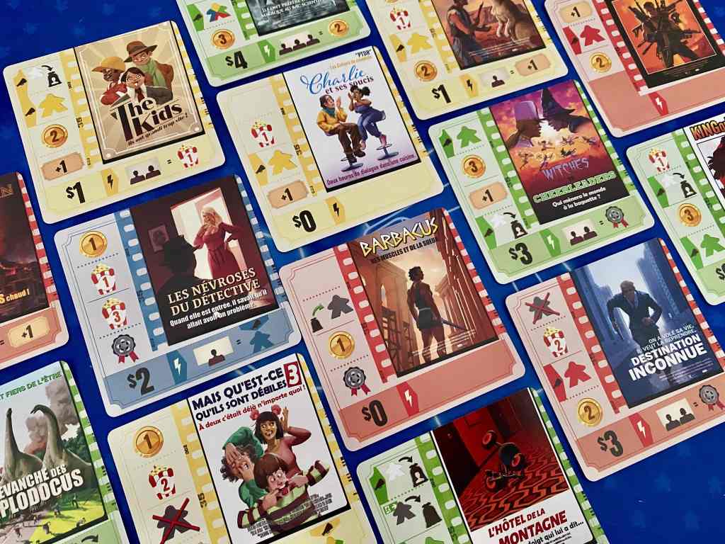 Tous ces éléments participent à une immersion assez importante alors même que le titre se révèle très mécanique. Gros « Big Up » aux bosseurs de chez Iello pour les titres des films et les réalisations des affiches. Le travail est somptueux et mérite qu’on lui jette un coup d’œil attentif ! Les joueurs (certes, un chouille extrémistes) se surprennent à choisir certaines cartes uniquement pour leurs appellations et leurs propositions graphiques. En résumé, l’édition est vraiment dans son fauteuil rouge.