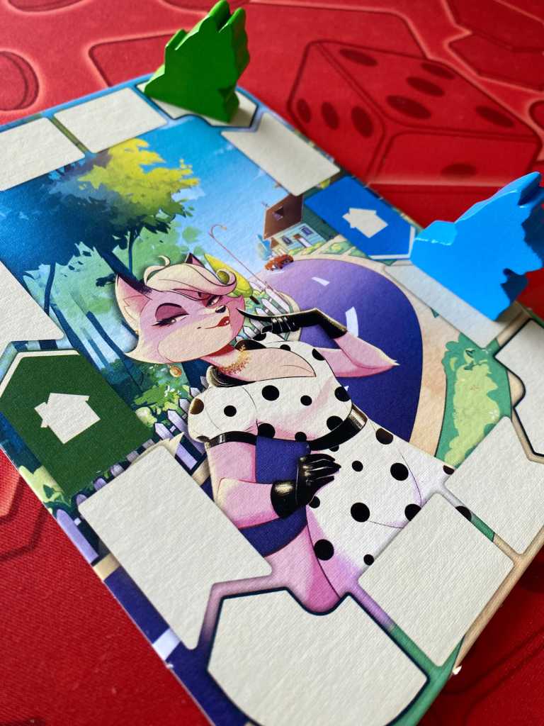 La porte lui est grande ouverte. En effet, il s’agit d’un titre pour deux joueurs, compétitif, porté par des cartes et frôlant la vingtaine d’euros. Bref, il est pile dans la mouvance du moment, ce qui peut d’ailleurs le desservir, tant il y a profusion, actuellement, de jeux ayant le même profil que lui. Ici, les participants proposent deux cartes à leur adversaire, l’une face cachée et l’autre face visible. Le concurrent en choisit une, obligeant le joueur actif à récupérer l’autre. Ces cartes permettent de progresser sur une piste circulaire dans le but de rattraper le concurrent. Voilà, c’est tout, c’est simple, c’est évident, c’est limpide, c’est du génie.