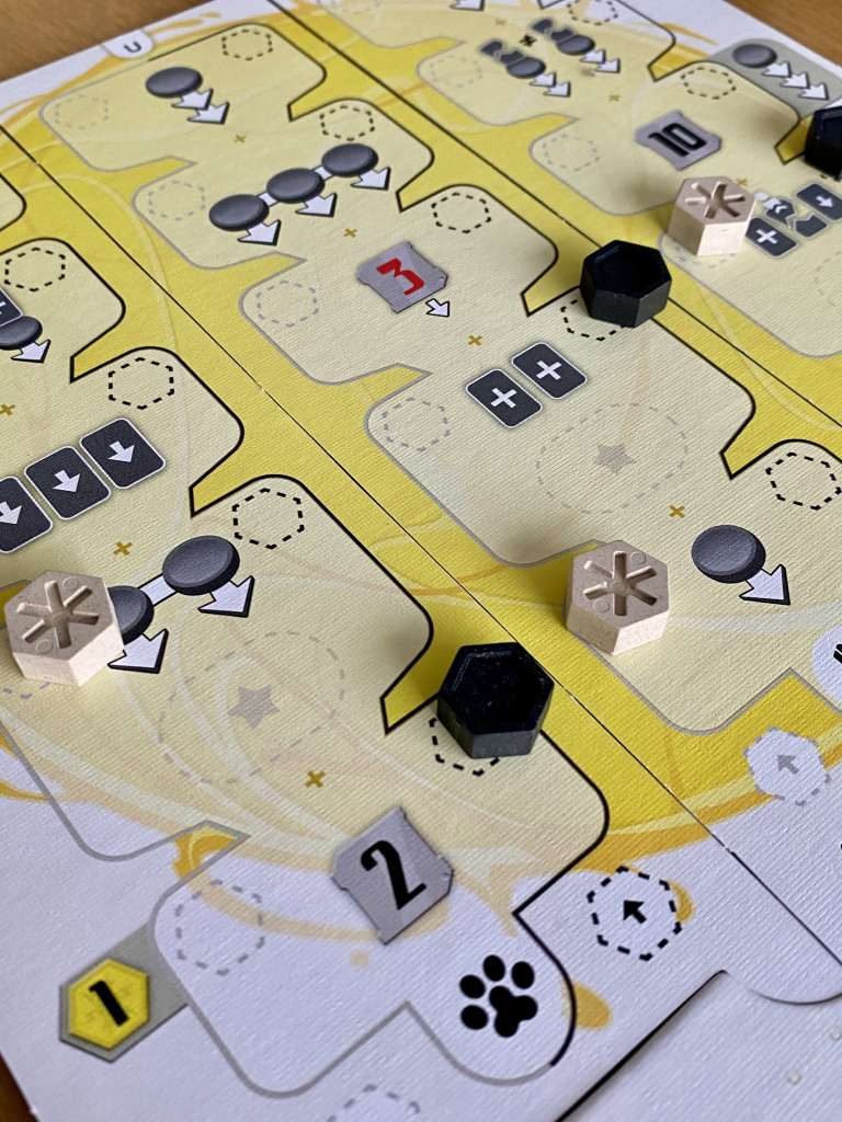 Oui, ZENITH propose cinq tirs à la corde parallèles. Ce duel est d’une intensité folle. Les joueurs doivent maintenir leur vigilance sur tous les fronts et agir partout en même temps. Évidemment, c’est impossible. Alors il faut prioriser, organiser ses actions dans le temps, saisir les opportunités pour défendre obstinément et attaquer quand l’occasion se présente. Le jeu propose un ping-pong passionnant, mais plus du style des Lebrun que des gagnants de concours de camping. La lutte est acharnée, les interactions sont frontales, mais le jeu ne perd à aucun moment son côté hautement ludique. On se rend coup pour coup en pestant, en se satisfaisant d’une action, en ayant hâte que le prochain tour arrive.