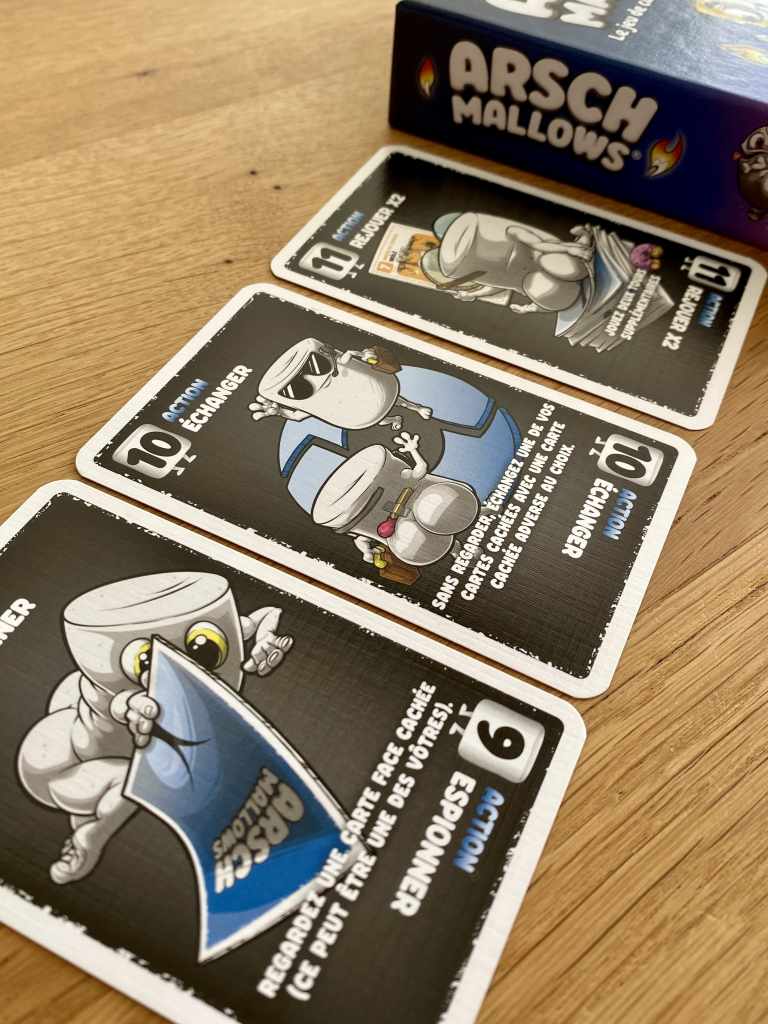 En résumé, sans aucune originalité, ARSCHMALLOWS reste un petit jeu agréable. Évidemment, tous ceux connaissant par cœur les dix mille déclinaisons de SKYJO le trouveront sans doute largement dispensable et inutile. Pour ma part, et fuyant habituellement ce type de jeu, je ne boude pas les parties qu’on peut me proposer. Oui, aujourd’hui, j’ai envie d’être sympathique !