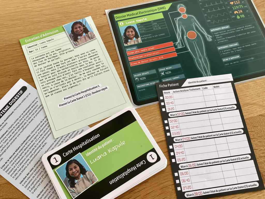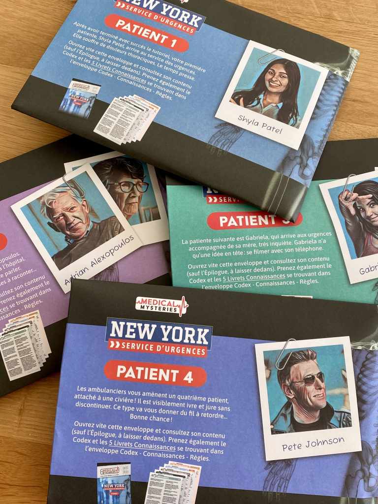 La boîte comporte quatre cas de patients différents (ainsi qu’un Tutoriel). Pour chaque patient, les joueurs ont à leur disposition en début de partie :