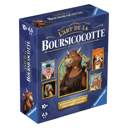 L’ART DE LA BOURSICOCOTTE est une réédition, avec quelques ajustements, de BOURSICOCOTTE, un jeu fourbe d’enchères, sorti en 2003.