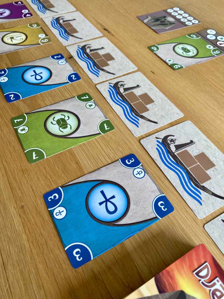 Malgré ce twist assez novateur et bien senti, le titre ne m’a pas vraiment fait d’effet. Il se révèle trop mécanique et les sensations restent assez plates. La course aux constructions fonctionne, sans aucun doute, mais m’a laissé de marbre ou de pierre pour être raccord. Les participants manquent trop souvent de choix dans les décisions à prendre tant les contraintes soufflent les réponses. DJESER est un petit costaud, qui ne manque pas de bonnes idées, mais qui peine à nous embarquer dans ses felouques.