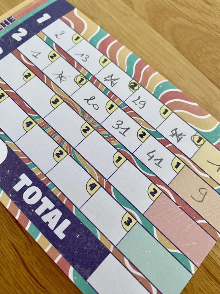 J’exagère. Il y a bien deux petits twists qui mettent un peu de paprika sur les frites. Déjà, si deux joueurs se sont positionnés sur le même numéro, ils n’obtiendront qu’un petit bonus sans prendre la main et espérer bien plus de points. Aussi, en début de manche des jetons pris au hasard interdisent le choix de certains chiffres en guise d’unités. Voilà voilà. Ce n’est pas folichon, vous me direz, mais c’est ce qui fait le sel de cette petite boîte. Pourquoi ? Parce que le but est bien d’inscrire un numéro non choisi par d’autres joueurs et dans des « espaces temps » éloignés pour tenter de marquer beaucoup de points. Vous le voyez le « guessing » ? Oui, ok, c’est plus du « pifomètre » que du « guessing », mais quand même !