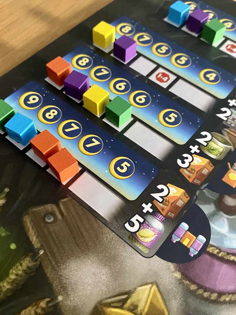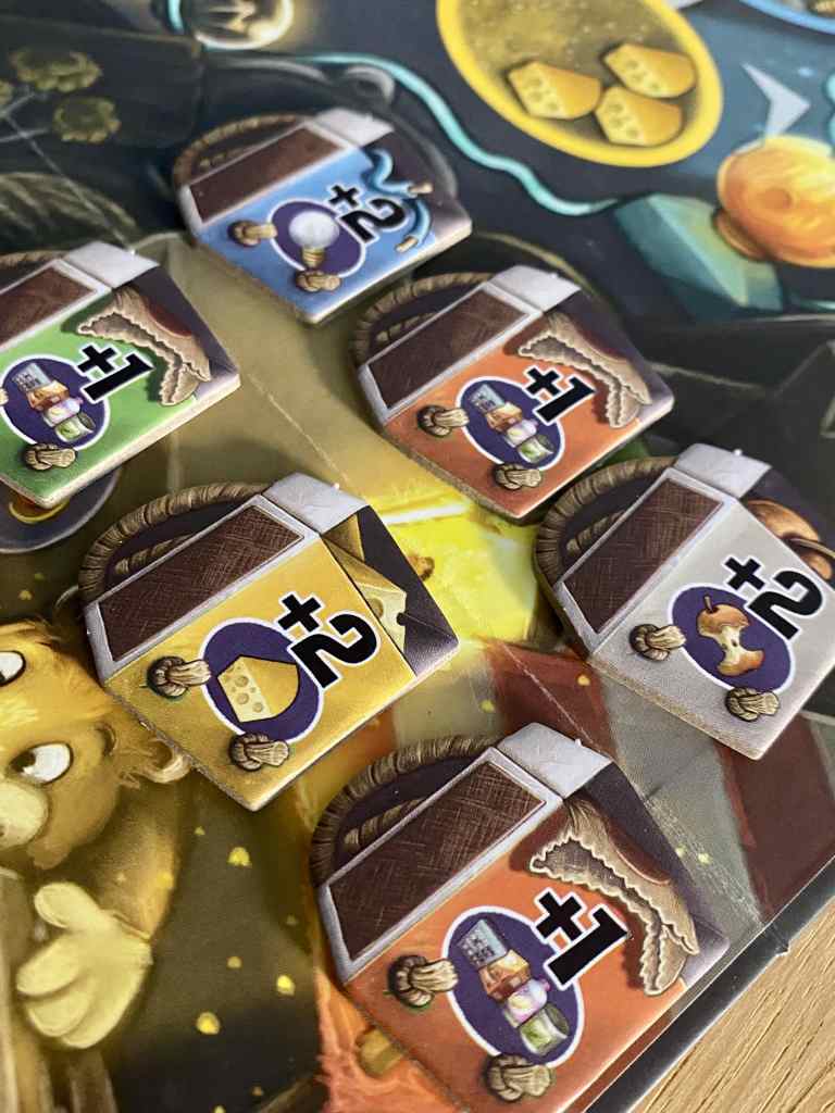 Pourquoi ? Parce qu’il intègre quelques éléments plus habituellement utilisés dans des opus plus complexes. Les joueurs peuvent, par exemple, acquérir des capacités permanentes créant ainsi une légère asymétrie au cours de la partie. La course aux meilleures positions sur les différentes pistes oblige à une gestion de ressources serrée et à des déplacements de rats malins où l’optimisation joue un rôle essentiel. Les choix possibles de retours en arrière offrent également des possibilités tactiques plus étendues que dans de nombreux opus ciblant prioritairement le public familial. En résumé, FIRST RAT assume avec élégance ses quelques subtilités qui élèvent le niveau d’une mécanique générale pourtant accessible.