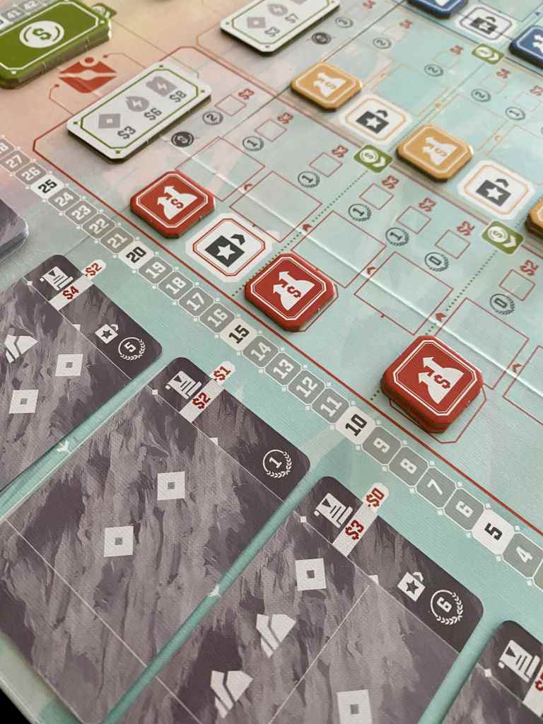 Si la thématique laisse de marbre, elle est pourtant très bien retranscrite dans les différents éléments du jeu, ce qui facilite grandement l’expérience. De l’extraction de plus en plus profonde, à la transformation de ressources, en passant par l’achat d’action aux différentes entreprises, tout fait sens. Ainsi, le jeu en apparence complexe se révèle plus accessible que prévu. Le livret de règles, extrêmement bien rédigé, facilite également la prise en main de la bête.