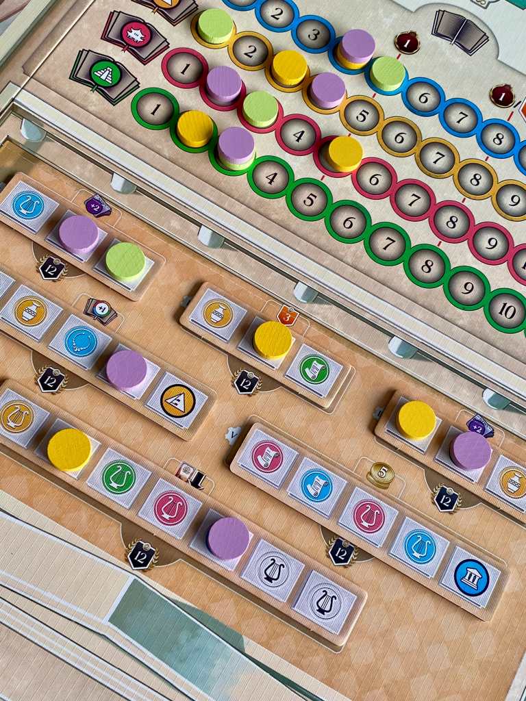 - Des interactions bien présentes, notamment par les gains de bonus, les prises de majorités sur les collections de reliques ou la rivière de cartes