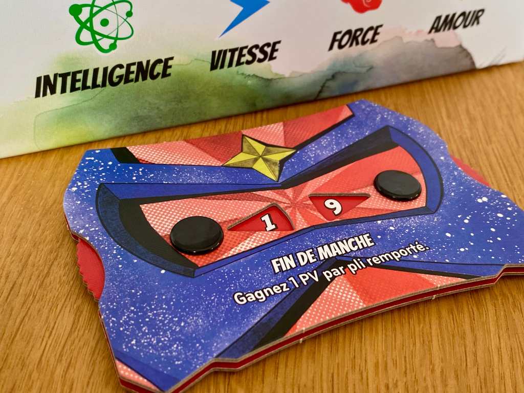 Une partie comprend cinq manches, scindées en six étapes (sept à la troisième manche avec la révélation d’un évènement venant bouleverser les règles de cette manche). Au début de chaque manche, les joueurs reçoivent huit cartes au hasard prises dans un paquet de 52 cartes. Ils reçoivent ensuite une énergie de la réserve avant de piocher trois cartes Histoire pour n’en garder qu’une (sauf lors de la cinquième manche pendant laquelle les participants révèlent leurs deux cartes Super-Héros mises en place en début de partie pour n’en conserver qu’une seule face visible). La troisième étape consiste à charger les compétences figurant soit sur le plateau individuel des joueurs, soit sur leurs cartes Histoire conservées. Il s’agit d’attribuer l’énergie demandée par les compétences que les joueurs souhaitent acquérir pour bénéficier de leurs effets lors de la phase de plis. La quatrième étape demande aux concurrents de définir simultanément leurs prédictions sur le nombre de plis qu’ils pensent réaliser. Pour ce faire, ils positionnent devant eux leur cadran de prédiction sur la face Héro (avec l’objectif de faire le plus de plis possibles) ou Méchant (avec l’objectif de ne faire aucun pli). La cinquième étape est une série de 8 plis qui se déroule de façon traditionnelle, à savoir que les participants doivent joueur une carte de même couleur que le meneur s’ils le peuvent. L’atout est la couleur Jaune et l’emporte sur toutes les autres couleurs. Le gagnant du pli est le joueur ayant joué la valeur la plus forte dans la couleur demandé ou en jaune. Enfin, lors de la fin de manche, les joueurs récupèrent les énergies utilisées et remportent des points selon les plis qu’ils ont réalisés et en fonction des prédictions qu’ils ont faites (Héros : 1 point par pli, Méchant : 4 point si aucun pli). Attention, les effets chargés des compétences s’appliquent tout au long de la manche en cours, au moment indiqué par celles-ci, et viennent bouleverser les règles du jeu.