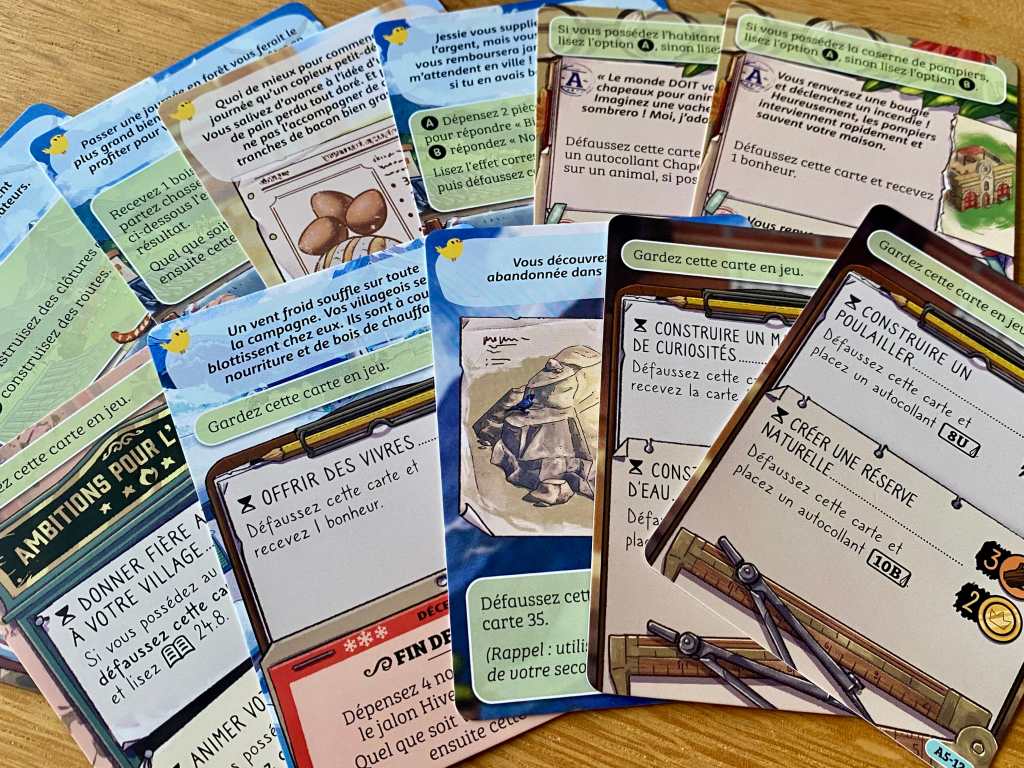 Oui, COZY STICKERVILLE est une expérience un peu décalée. Il s’agit d’un jeu coopératif (ou solo) sans victoire ni défaite. Les participants tentent de construire un village de façon la plus harmonieuse possible et suivent les chemins proposés par la narration en conséquences des choix qu’ils prennent. Il n’y a pas de bons ou de mauvais choix, il y a des décisions qui orientent le tracé de la campagne, partie après partie.