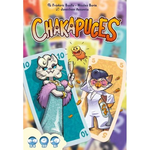 Voilà un petit jeu de cartes familial agréable, porté par une très jolie direction artistique. À leur tour, les joueurs devront poser deux cartes au centre de la table, mais seule la deuxième s’activera. Si c’est la seule carte de sa valeur, le joueur actif défausse des puces de son stock, selon la grandeur de la suite qu’il a constituée. Si la carte jouée se superpose à une autre carte de même valeur, alors il récupère les tas adjacents. Le « scoring » prend en compte les cartes acquises et les puces encore en possession. C’est très simple, malin et l’idée de devoir constituer suites et/ou colonnes en parallèle, pour jongler sur les deux fronts, se révèle plaisante. Les Chakapuces octroient un malus en puces aux adversaires. Non, vraiment, le titre porte de bonnes sensations, notamment dans les filouteries légères qu’il propose.