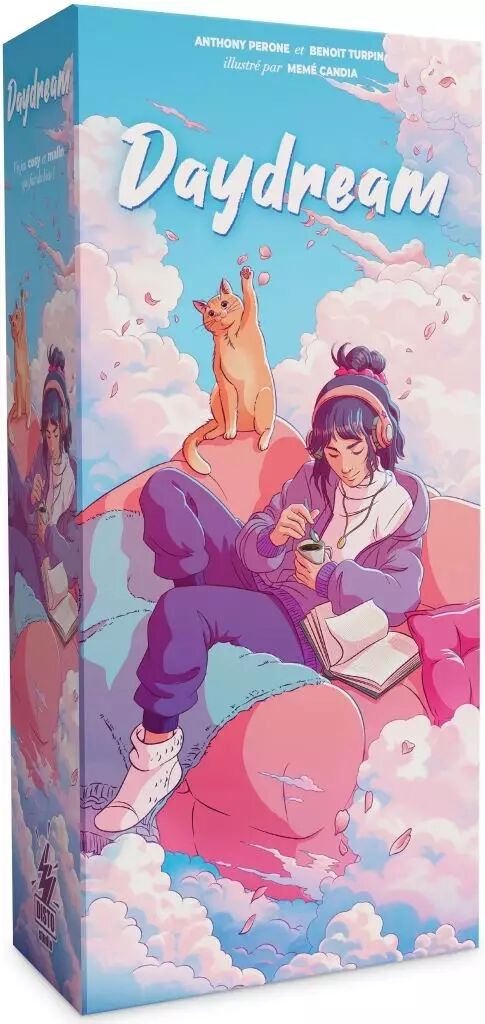 Je découvre DAYDREAM sur le tard et sans trop savoir de quoi il s’agit même si le matraquage médiatique a bel et bien existé. Il s’agit d’un « Roll & Write » plutôt ordinaire porté par un univers « chill » comme disent les jeunes. Non, le chic vient avant tout des multiples combinaisons de plateaux de jeu possibles et des variantes. Le titre est efficace et parfaitement édité. De mon côté, ce n’est toujours pas lui qui me fera aimer le style. Je m’ennuie toujours autant, à gribouiller dans mon coin des chiffres ou des objets. Mais, pour les fans de « Roll & Write », je peux comprendre la satisfaction.